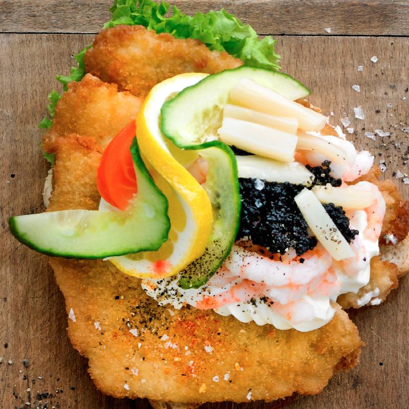 Lækkert stjerneskud med 2 friturestegt fisk, rejer